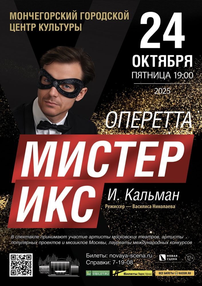 Мистер Икс — самая загадочная оперетта Имре Кальмана, само название обещает странные и непредсказуемые перипетии взаимоотношений: разновидности запретной любви, страсть, сжигающая изнутри, пороки, которые любовь обнажает. Цирк и высшее общество, арена и дворцовый зал, свет и полумрак. Лауреаты международных конкурсов оперетты и мюзикла, великолепные голоса, оркестровое звучание, яркие танцевальные номера, блистательные комические дуэты.