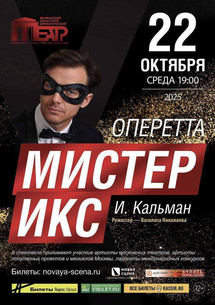 Мистер Икс — самая загадочная оперетта Имре Кальмана, само название обещает странные и непредсказуемые перипетии взаимоотношений: разновидности запретной любви, страсть, сжигающая изнутри, пороки, которые любовь обнажает. Цирк и высшее общество, арена и дворцовый зал, свет и полумрак. Лауреаты международных конкурсов оперетты и мюзикла, великолепные голоса, оркестровое звучание, яркие танцевальные номера, блистательные комические дуэты.